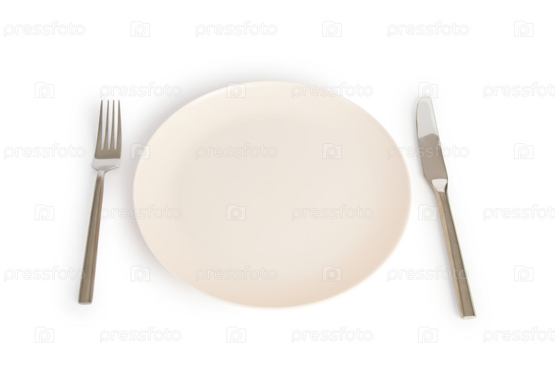 Тарелка и столовые приборы на столе