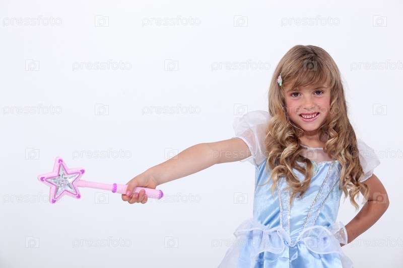 Маленькая девочка, одетая как принцесса с палочкой
