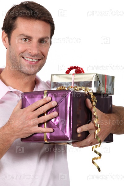 Мужчина держит подарки