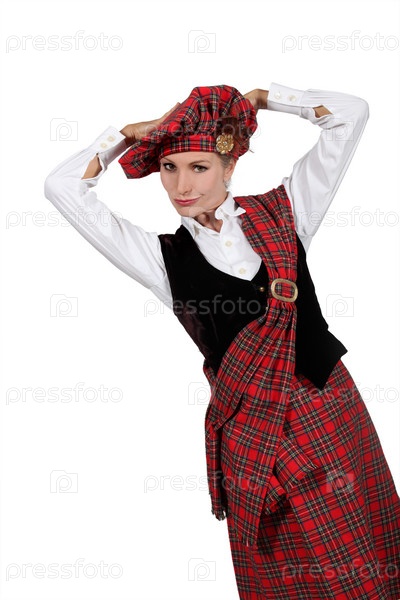 Молодая женщина в шотландский костюме