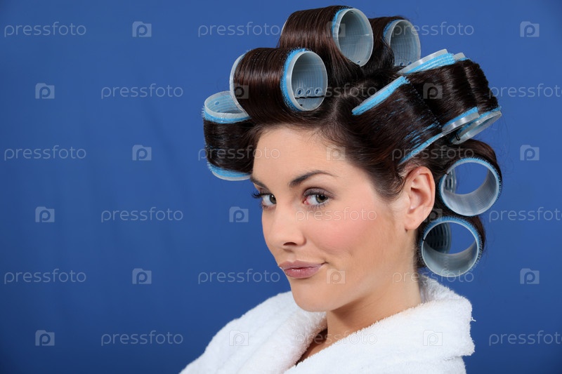 Женщина с бигуди для завивки волос