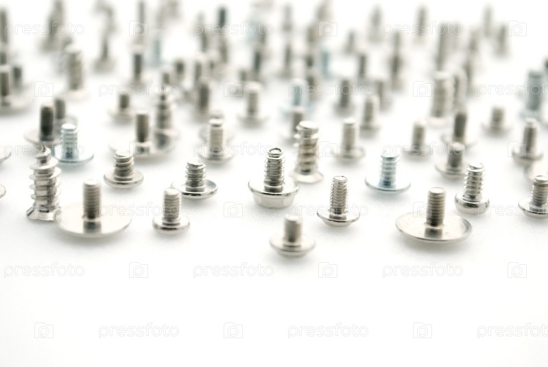 Множество хромированных болтов, стоящих на шляпке