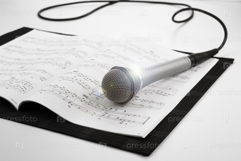 Микрофон, лежащий на нотной книге