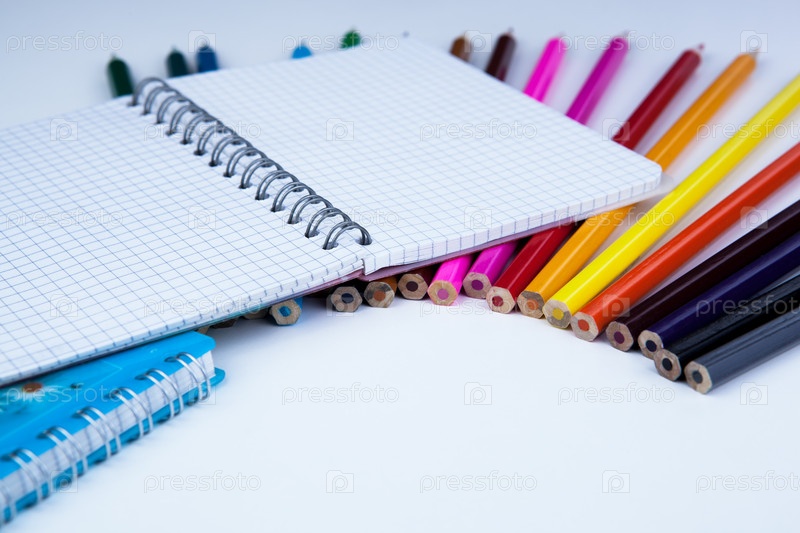 Цветные карандаши и блокнот