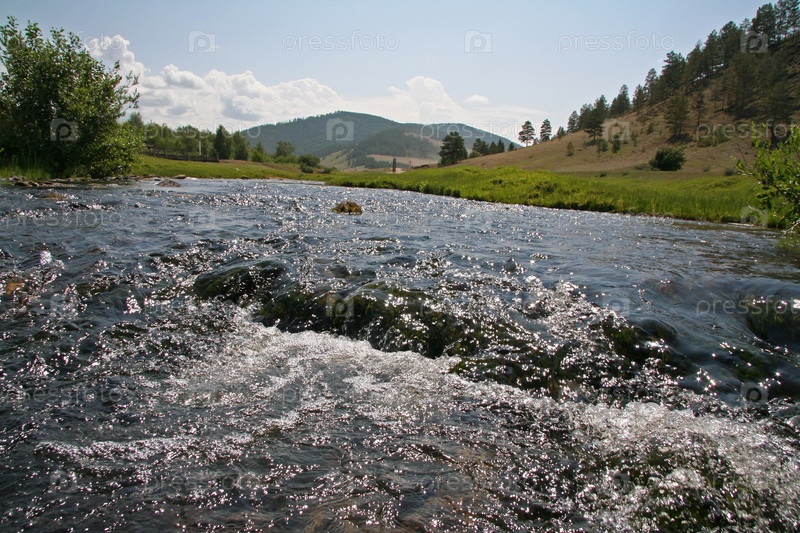 Холодная сибирская река течет через каменный сад, Баргузинская долина вблизи озера Байкал