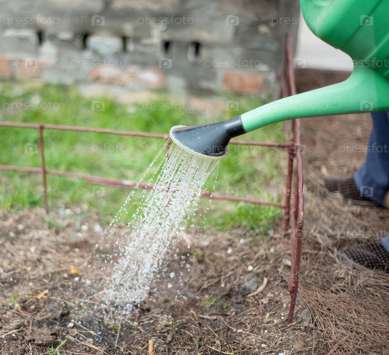 Человек поливает огород