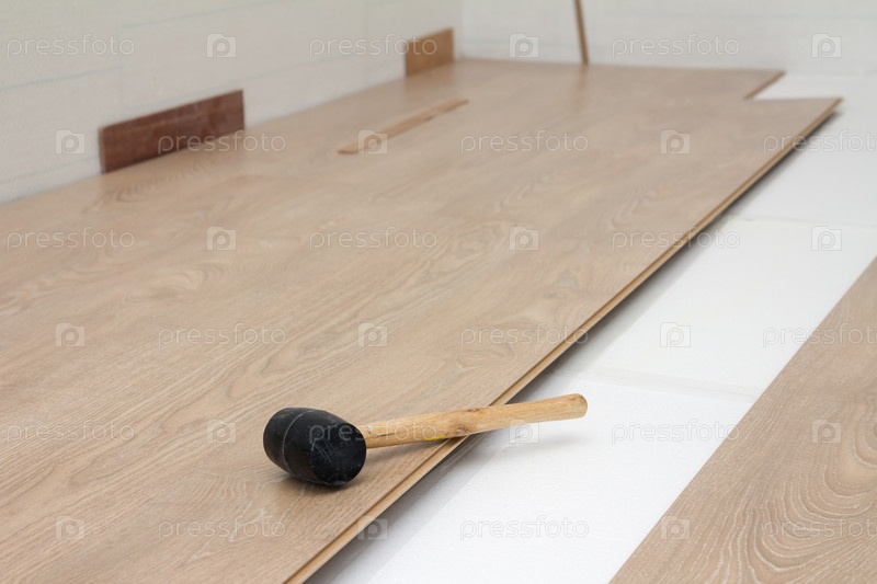 Работник монтирует ламинат