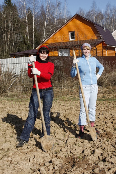 Женщины копают землю для посадки картошки