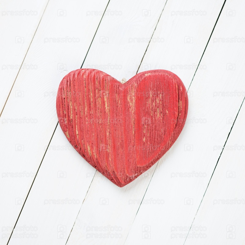 Красное деревянное сердце на белых досках