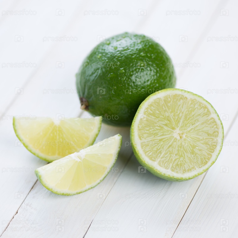 Свежий лайм и его дольки на деревянных досках
