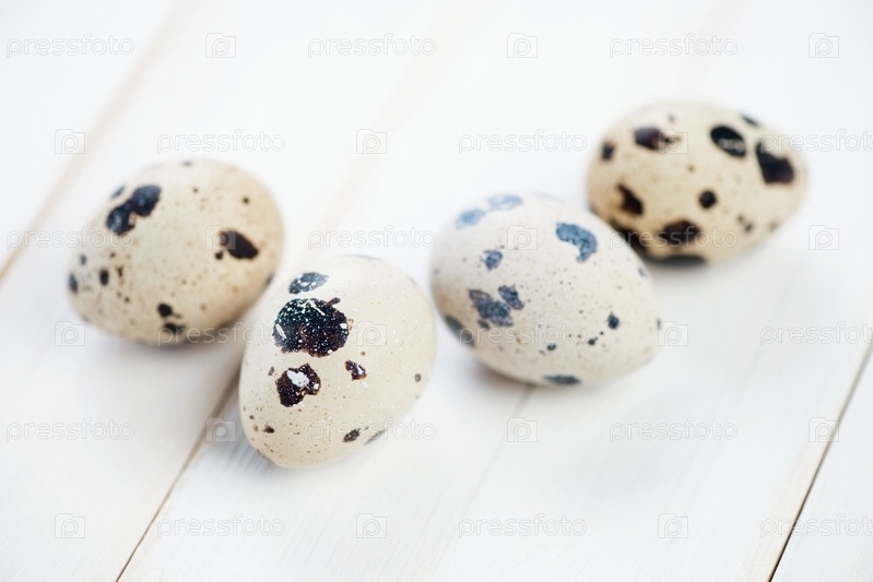 Сырые перепелиные яйца на деревянных досках