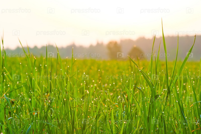 Свежая трава на лугу крупным планом