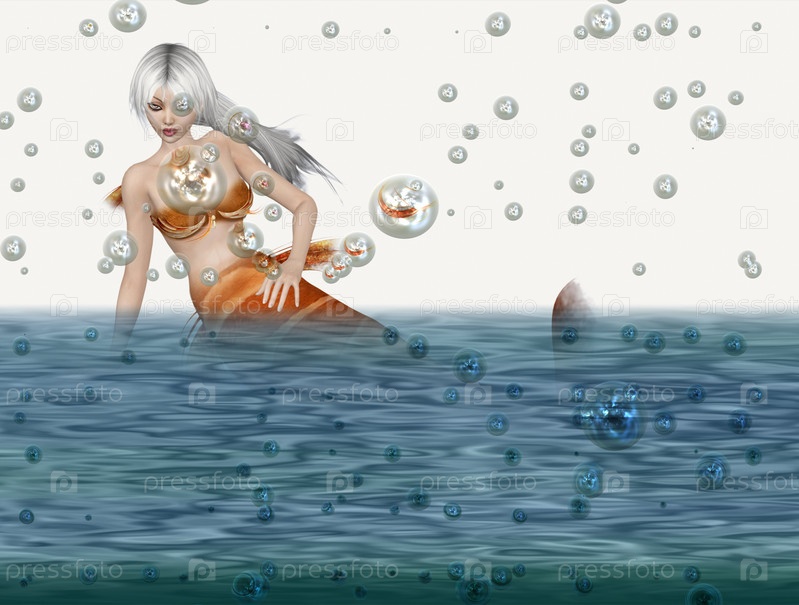 Русалка с пузырьками в воде