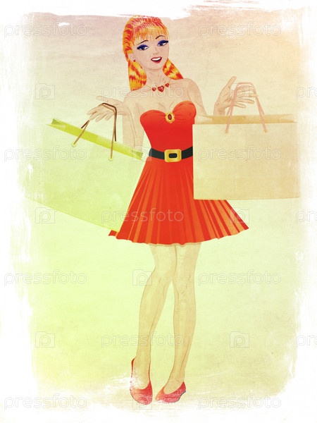 Девушка с рыжими волосами и покупками