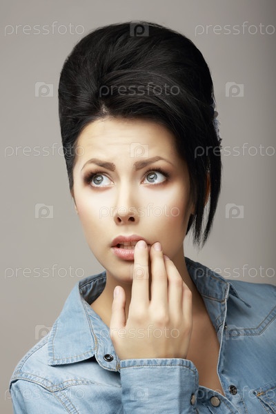 Очаровательная мечтательная девушка с черными волосами