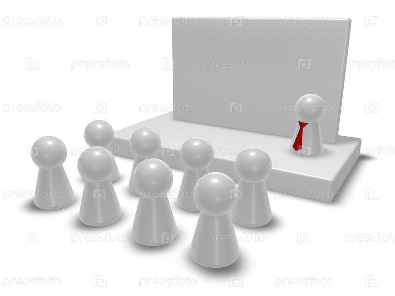 Спикер на сцене и толпа - 3d иллюстрация