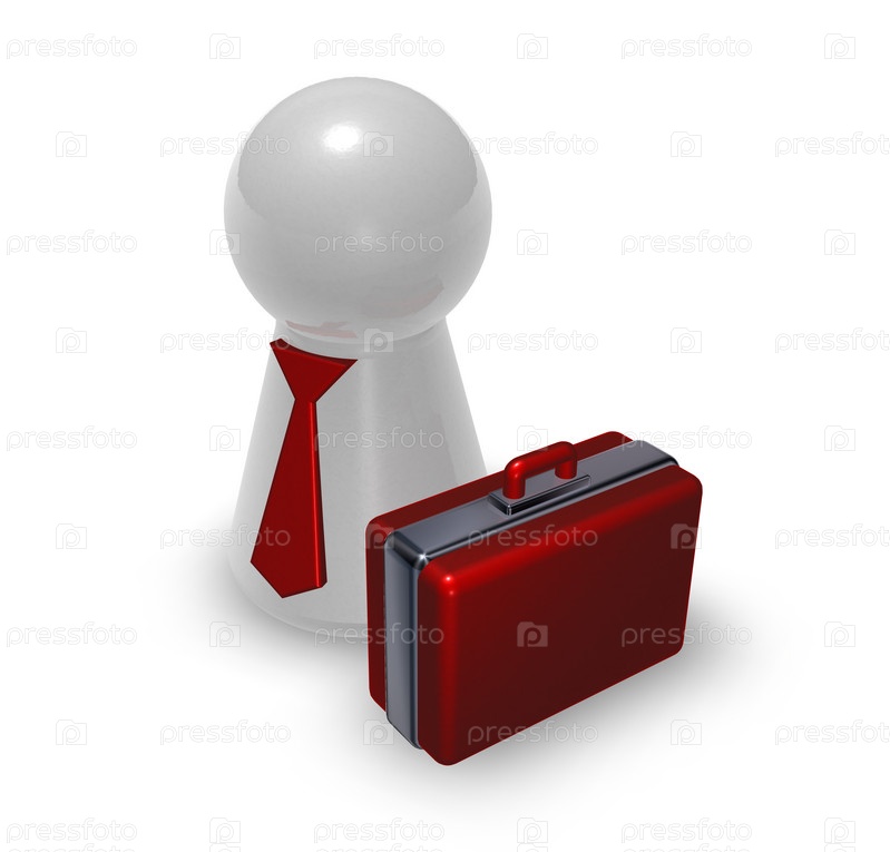 Персонаж с галстуком и чемоданом - 3d иллюстрация