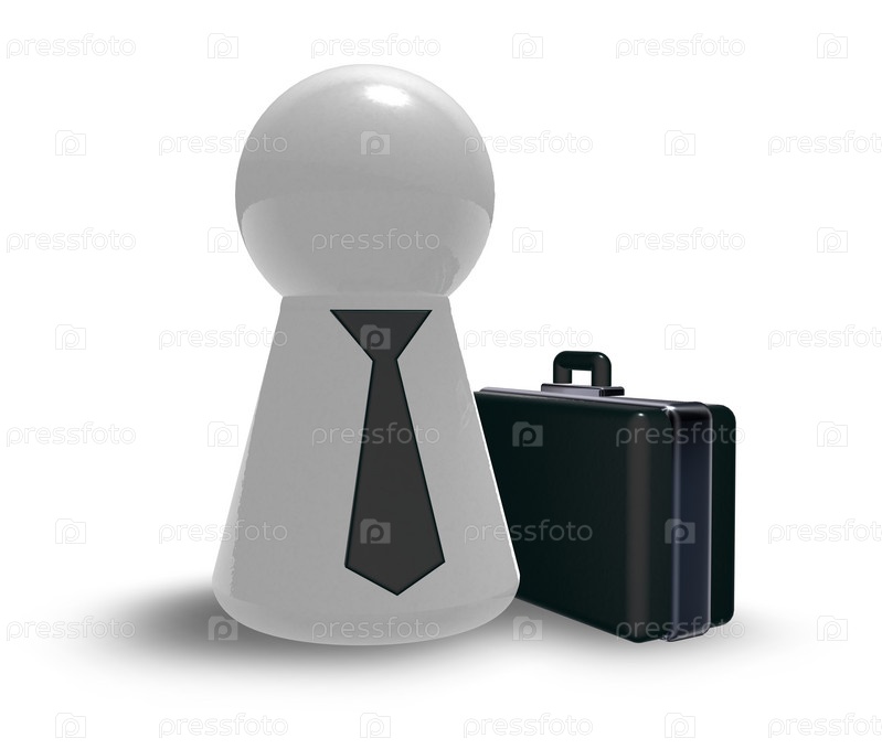 Персонаж с галстуком и чемоданом - 3d иллюстрация