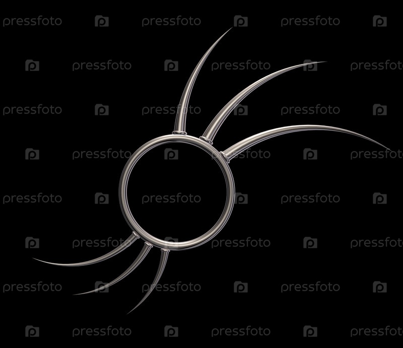 Металлическое кольцо с шипами на черном фоне - 3d иллюстрация