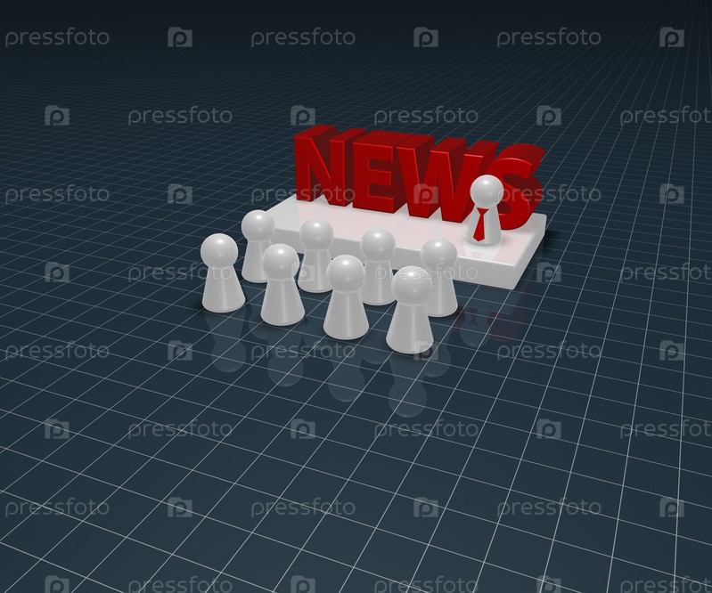 Новости, спикер на сцене и толпа - 3d иллюстрация