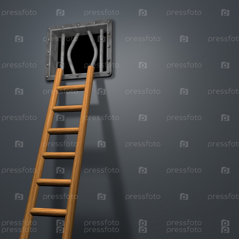 Тюремное окно и лестница - 3d иллюстрация
