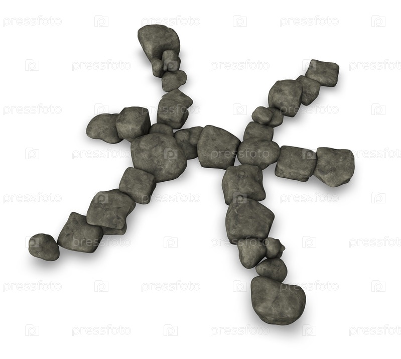 Зодиакальный знак рыб из камней на белом фоне. 3d иллюстрация