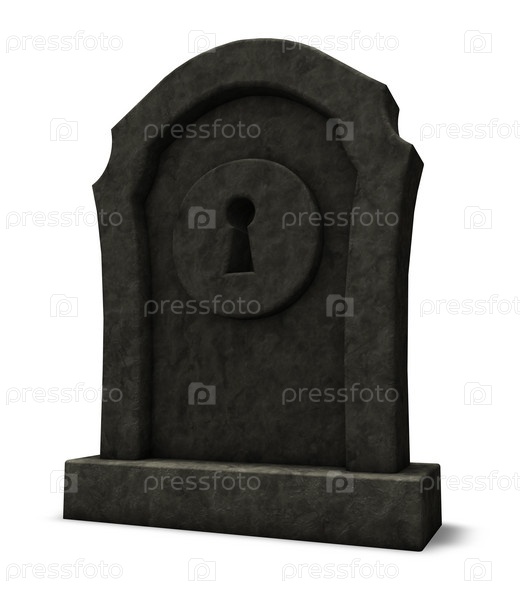 Замковая скважина на могильной плите. 3d иллюстрация