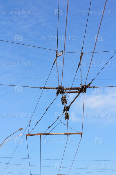 Железнодорожные провода на ясном голубом небе