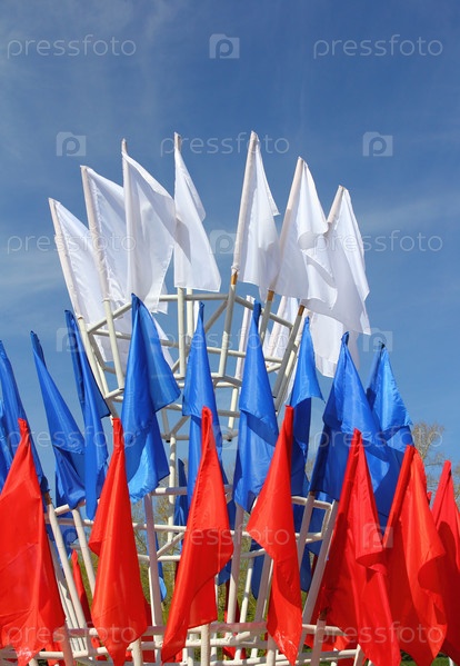 Цветные флаги на фоне голубого неба