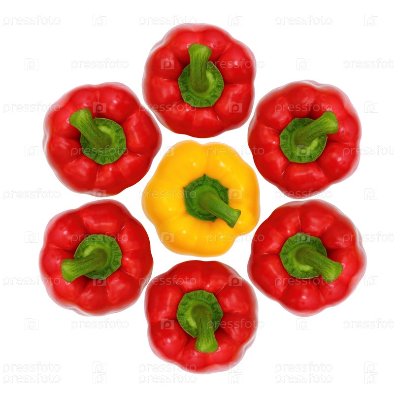 Красный и желтый сладкий перец, изолированный на белом фоне