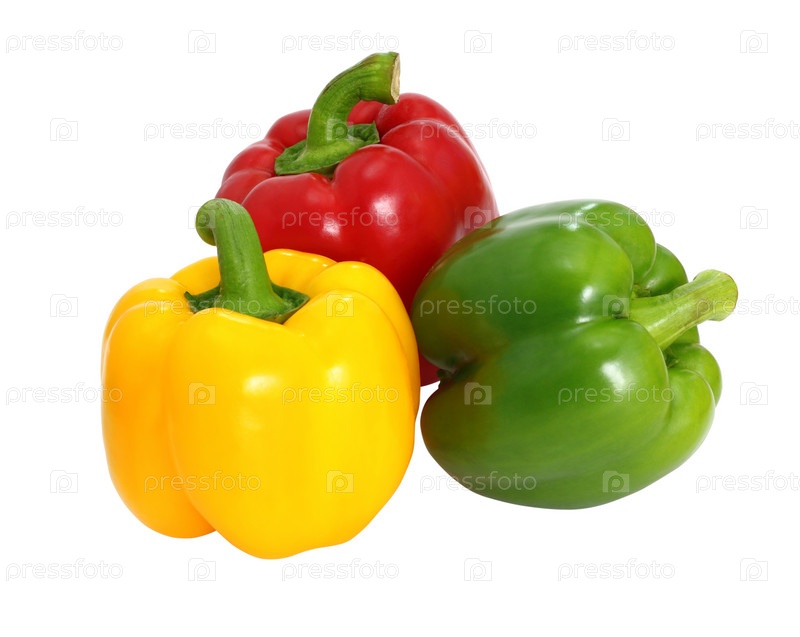 Красный, зеленый и желтый сладкий болгарский перец, изолированный на белом фоне