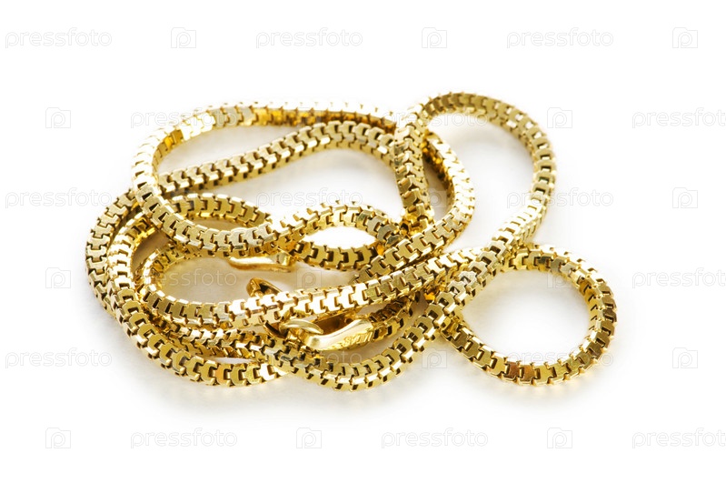 Золотые цепочки, изолированные на белом фоне