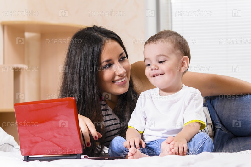 Мать и сын с ноутбуком