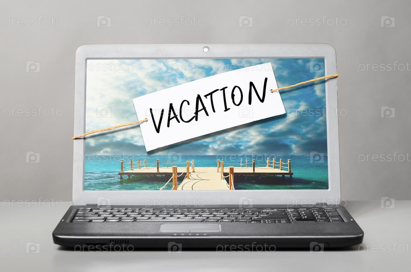 Ноутбук с запиской "отпуск"