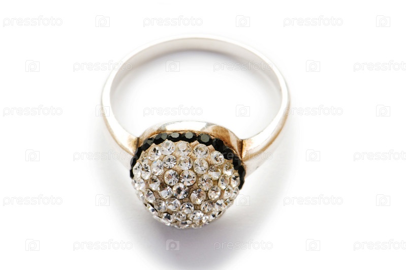Кольцо с белыми и черными камнями, изолированное на белом фоне