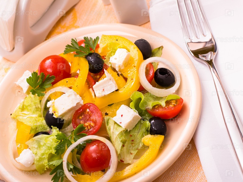 Греческий салат и вилка