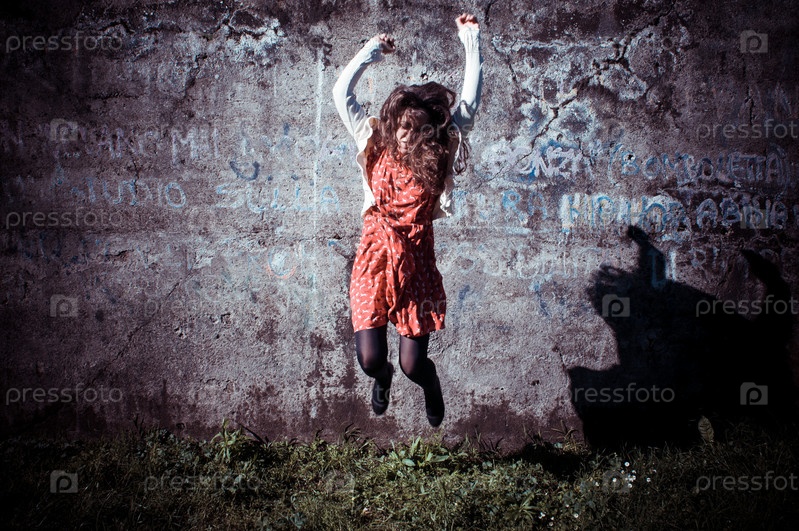 Счастливая женщина в прыжке