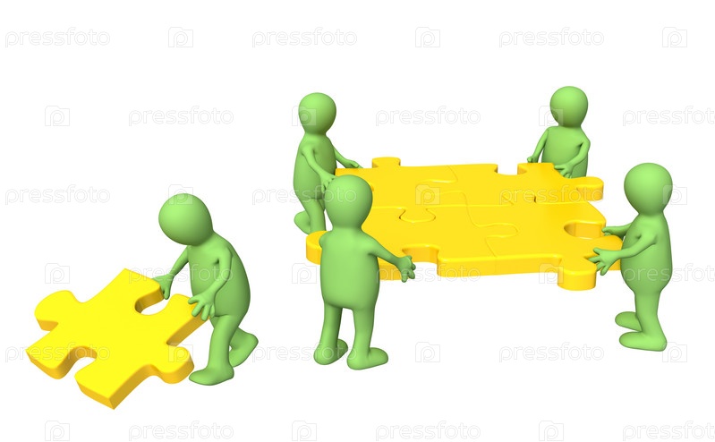 Четыре зеленых человечка собрали пазл и отвергают пятого