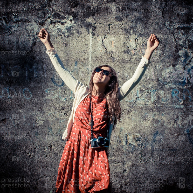 женщина со старой камерой