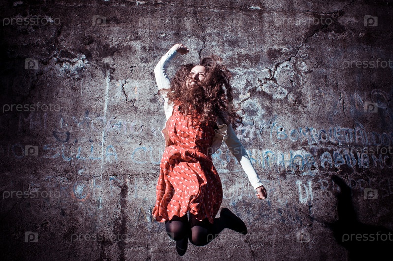 Счастливая женщина в прыжке