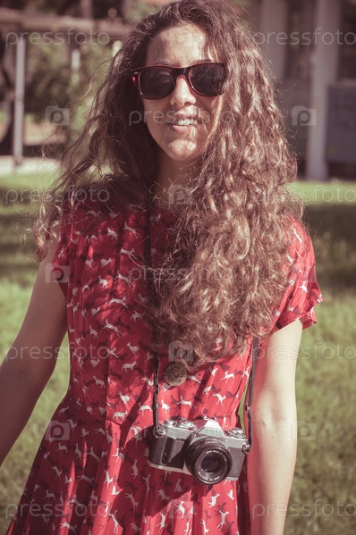 женщина со старой камерой