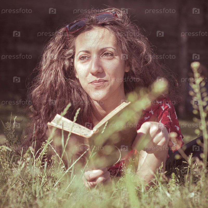 Женщина в винтажной одежде читает книгу