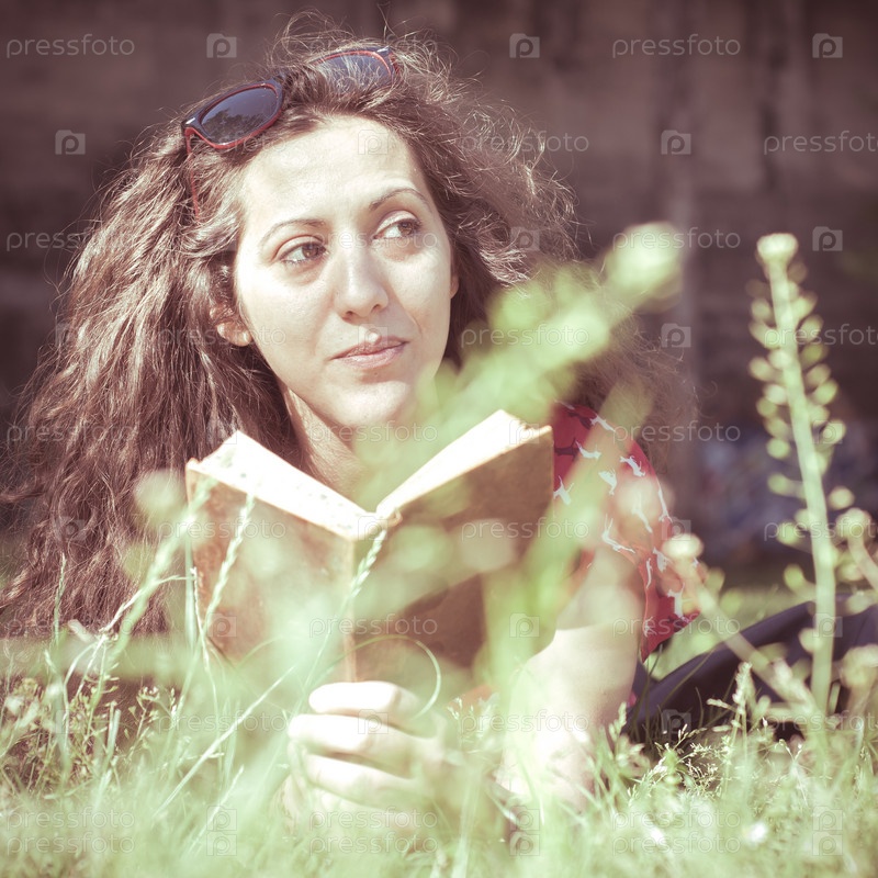 Женщина в винтажной одежде читает книгу
