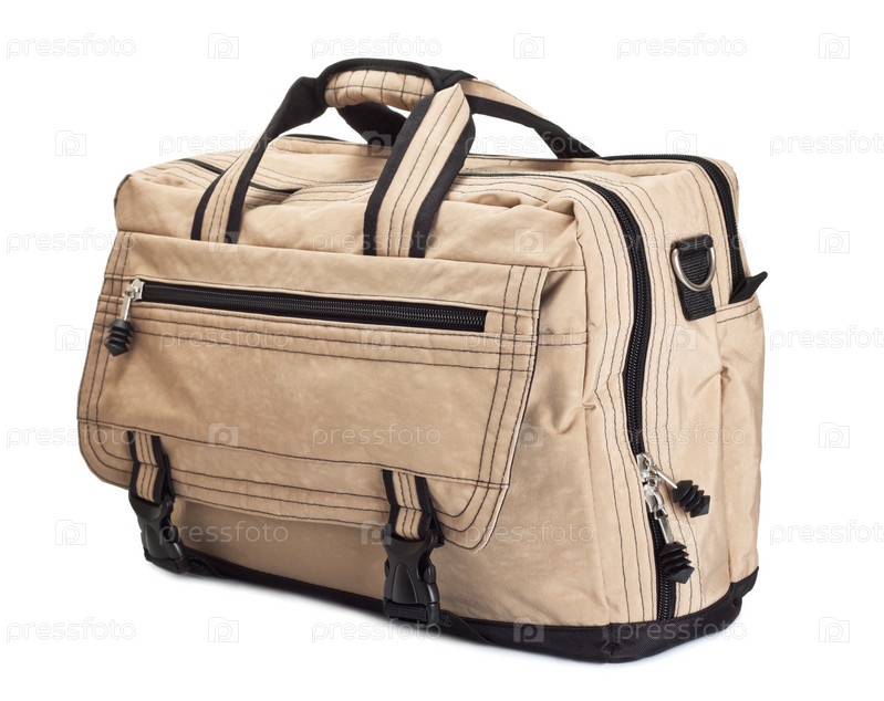 Бежевая дорожная сумка на белом фоне
