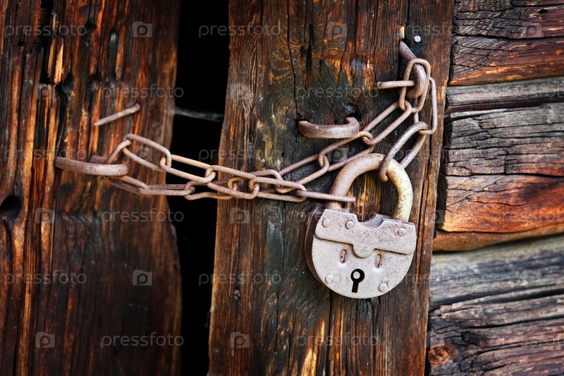 Старый ржавый замок на сельских воротах