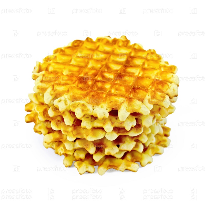 Круглые золотистые вафли в стопке