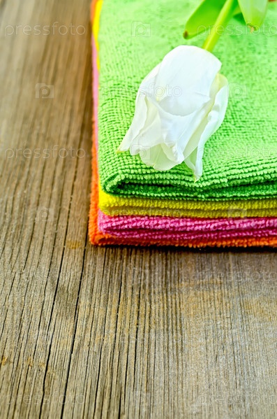 Стопка полотенец с белым тюльпаном