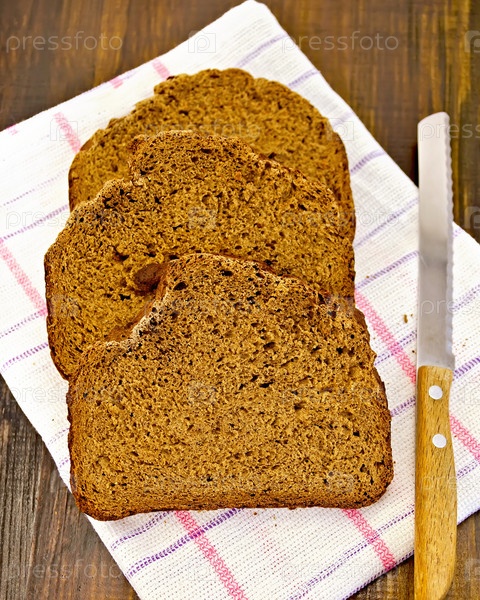 Ржаной хлеб ломтиками с ножом на салфетке