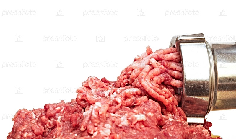 Старая мясорубка в действии на белом