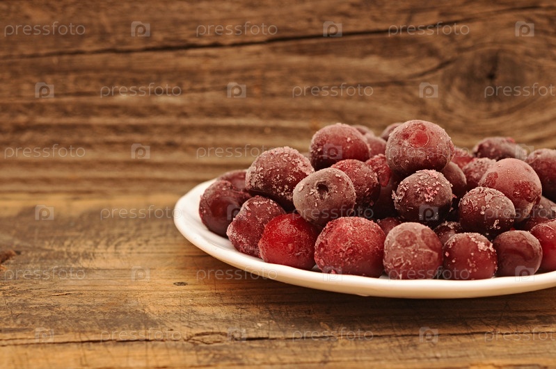 Спелые замороженные вишни крупным планом